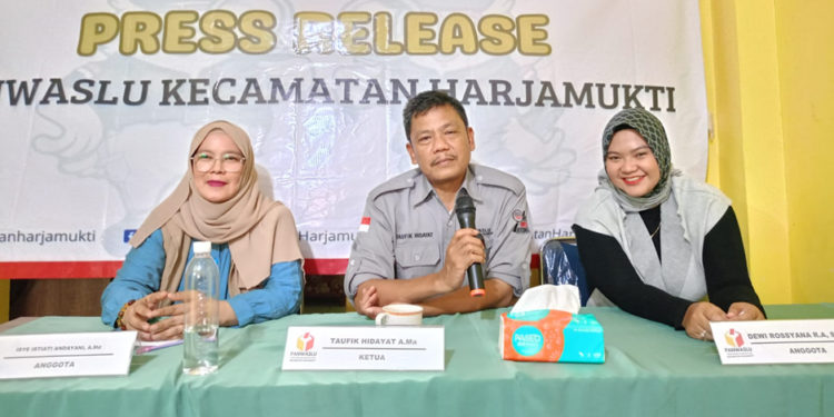 inicirebon – Pada tanggal 30 Januari 2024, Ketua Panwaslu mencegah Pelanggaran Pemilu Panwascam Harjamukti, Taufik Hidayat, bersama dengan dua anggotanya, Dewi Rossyana Rizka Agustin dan Isye Istiati, mengadakan pertemuan pers Masa Pengawasan Kampanye Pemilu 2024 di sekretariat Panwaslu setempat.